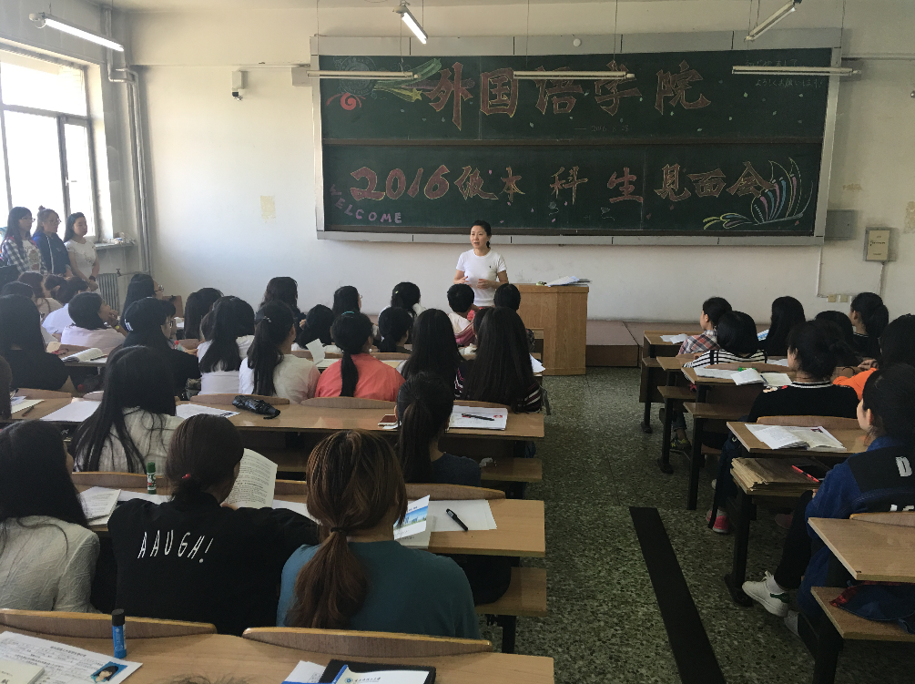为加强对新生的思想政治教育,帮助其快速适应大学生活,自8月29日至9月2日,外国语学院对2016级新生进行了一系列的入学教育。院长姜毓锋结合自己的外语学习经历,与同学们畅谈应如何度过大学生活。机智幽默的语言、睿智儒雅的谈吐获得了同学们极其热烈的掌声,为外国语学院2016级全体同学如何度过大学生活、如何学好外语奠定了十分重要的感性认识基础。姜院长的讲座与学生处组织的学业规划讲座相得益彰、相辅相成,对2016级新生未来四年的成长成才将会有重要的积极影响。副院长郭红结合学校相关管理规定,向2016级新生介绍了考试、考核、成绩评定、学籍管理等方面的具体要求,使新生认识到了大学学习成绩依然重要,“60分万岁”只不过是个传说。副书记周晓丽对全体新生进行了学生日常管理工作安全教育,结合当前社会较热的案例和自己的工作经历,向大家阐述了防盗、防骗、防火的重要性和具体做法,为同学们更好的保护自身和财物安全提供了思想支持,得到了广大同学的强烈反响。周书记还亲自组织召开了新疆籍学生和家长的座谈会,周书记和新生辅导员老师代表学院领导表达了对五位新疆籍学生的欢迎,通过谈话了解新疆籍学生的学习和生活情况,并鼓励他们快速融入外国语学院这个集体之中,学院领导的关心让新疆籍学生和家长十分感动,一位母亲当场落泪并十分感激地与周书记长时间握手。