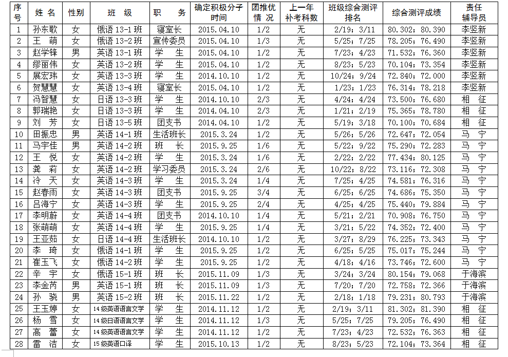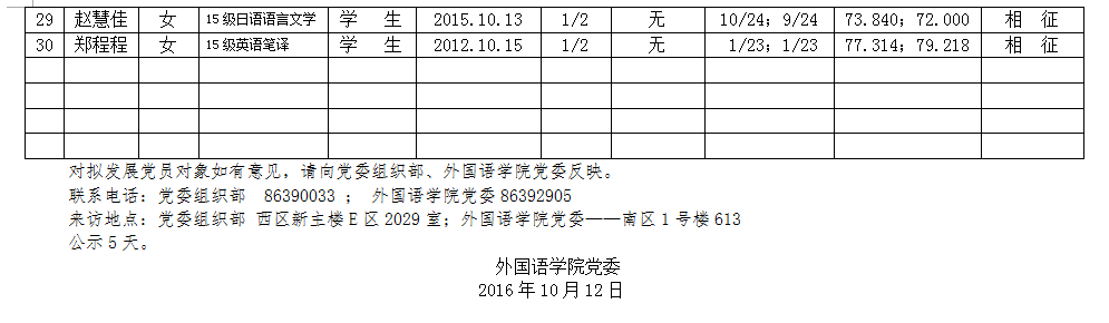 按照发展党员工作相关制度和程序,下列同志被确定为拟发展党员对象,现予公示: