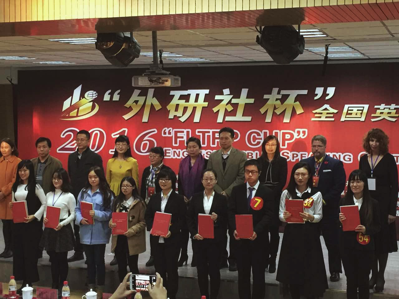 我校教师及选手合影 姜毓锋院长(上排右三)、外籍教师James Ray (上排右四)、李长熠老师(上排右二)、