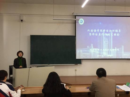 外国语学院党委书记高秀江首先讲话,指出目前学校已经到了迎接教育部本科审核评估的“临战状态”,全院干部、师生务必要以对学校和学院工作高度负责的态度,配合学校、学院“守好自己的一片田、管好自己的一段渠”。为使与会人员更好地了解本次迎评工作的相关知识并领会校领导相关讲话精神,高书记带领大家共同学习了《哈尔滨理工大学本科审核评估知识手册》,并对其中“审核评估常识”、“审核评估组织管理”、“审核评估信息化”及“学校评建工作”等部分内容做了详细解读。