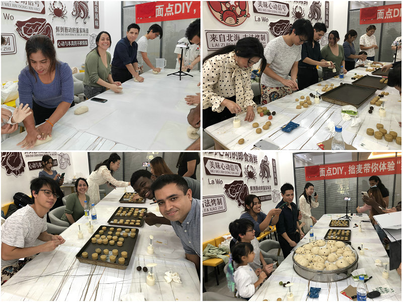 中午12点半,同学们先通过视频了解了中秋节的来历、风俗习惯,在校生来自俄罗斯、巴拿马、厄瓜多尔、老挝等把八个国家的留学生,与境外线上的同学们互动,与中国烘焙师傅一起制作香甜的月饼、兔子造型馒头。线上同时还有一部分留学生通过直播的方式,看到了中秋节的来历介绍和月饼的制作过程,他们虽然没法来到现场一起互动,但是直播互动同样让大家增加了对中国传统节日的了解。最后马院长、顾书记等院领导代表学校为留学生们送上了我们理工大学制作的月饼,并表达了节日的祝福。