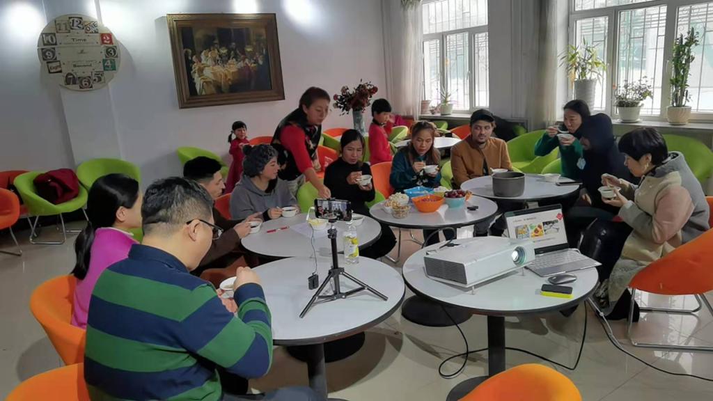 外国语学院院领导与留学生们一起品尝腊八粥