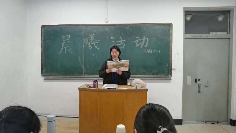 早自习上,19-3班阿依加玛丽•木萨为同学们朗诵诗歌《致大海/К морю