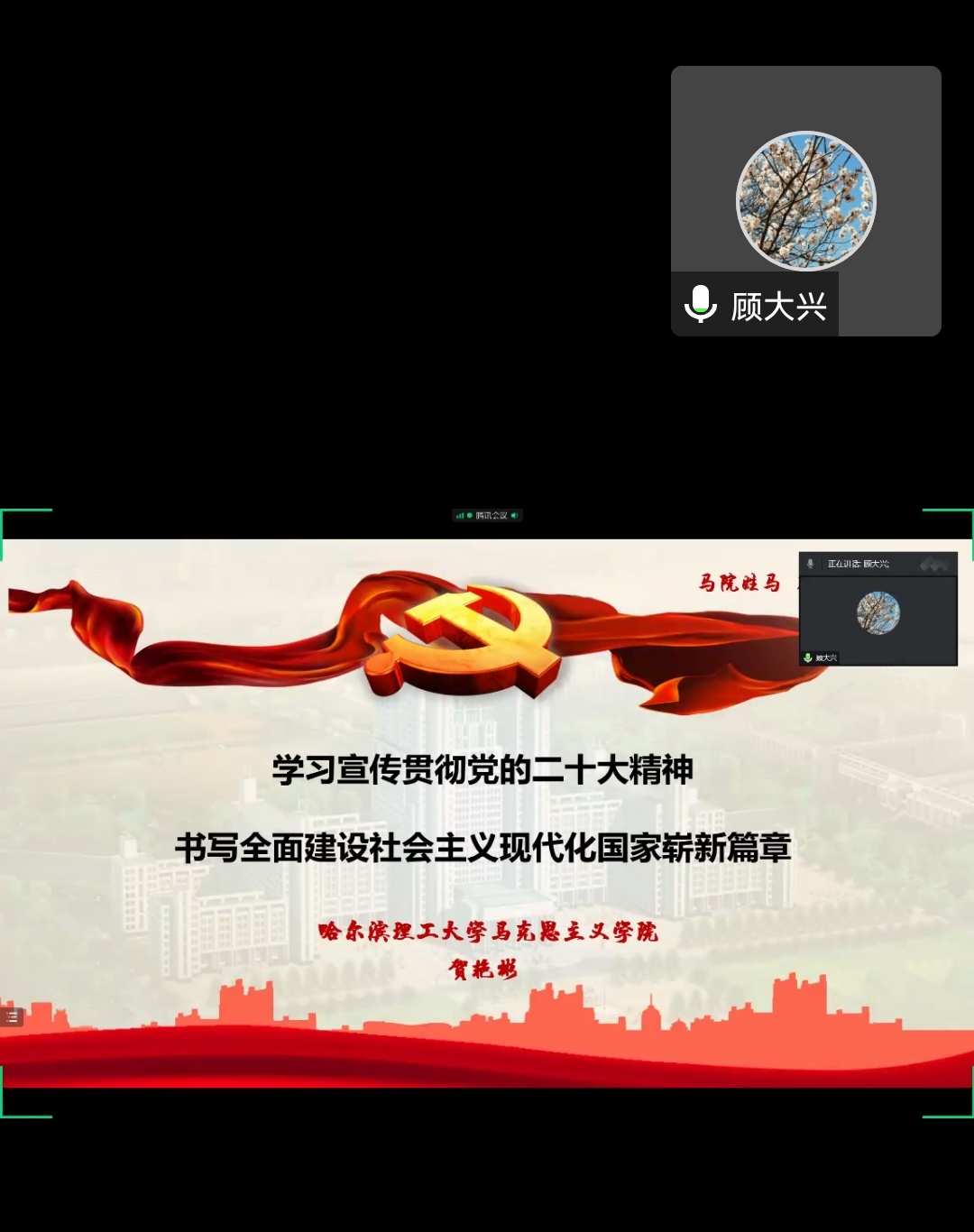 学院党委书记顾大兴讲,贺艳彬老师全面系统、形象生动的精彩宣讲,为我们作了一个紧扣主题、体现内涵、把握精神的报告,作了一个启发思维、理清思路、鼓舞干劲的报告,作了一个理论性强、针对性强、操作性强的报告,对我们深刻理解和准确把握二十大精神有很大的启发和帮助。学院要持续兴起学习宣传贯彻党的二十大精神的热潮,准确把握党的二十大精神实质和核心要义,不断提高政治站位和思想觉悟,进一步将二十大精神与学院日常教学科研工作结合,守正创新,书写新篇章,展现新作为,推动学校以及学院各项事业高质量发展。
