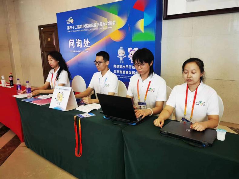 2023年6月15日至19日,第三十二届哈尔滨国际经济贸易洽谈会(简称“哈洽会”)在哈尔滨国际会展体育中心举办,共有38个国家和地区、国内21个省区市的1400余家企业参展。为锻炼学生的沟通能力和实践能力,助力哈洽会,服务龙江经济发展,经校团委前期联络对接,通过团省委的选拔,我校外国语学院共派出4个语种的本、硕学生及留学生70余名志愿者参与哈洽会的筹备工作和展会期间的各项服务工作。