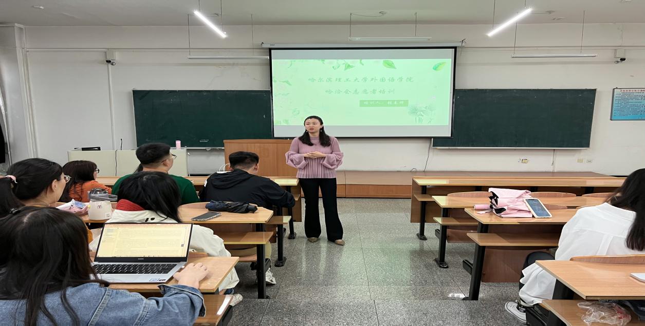 选拔过程中,英语系党支部书记张春烨老师提前为志愿者进行了通用知识培训,介绍了哈洽会基本知识、岗位职责、安全守则、礼仪风貌、突发紧急事件应对及处置等方面内容。
