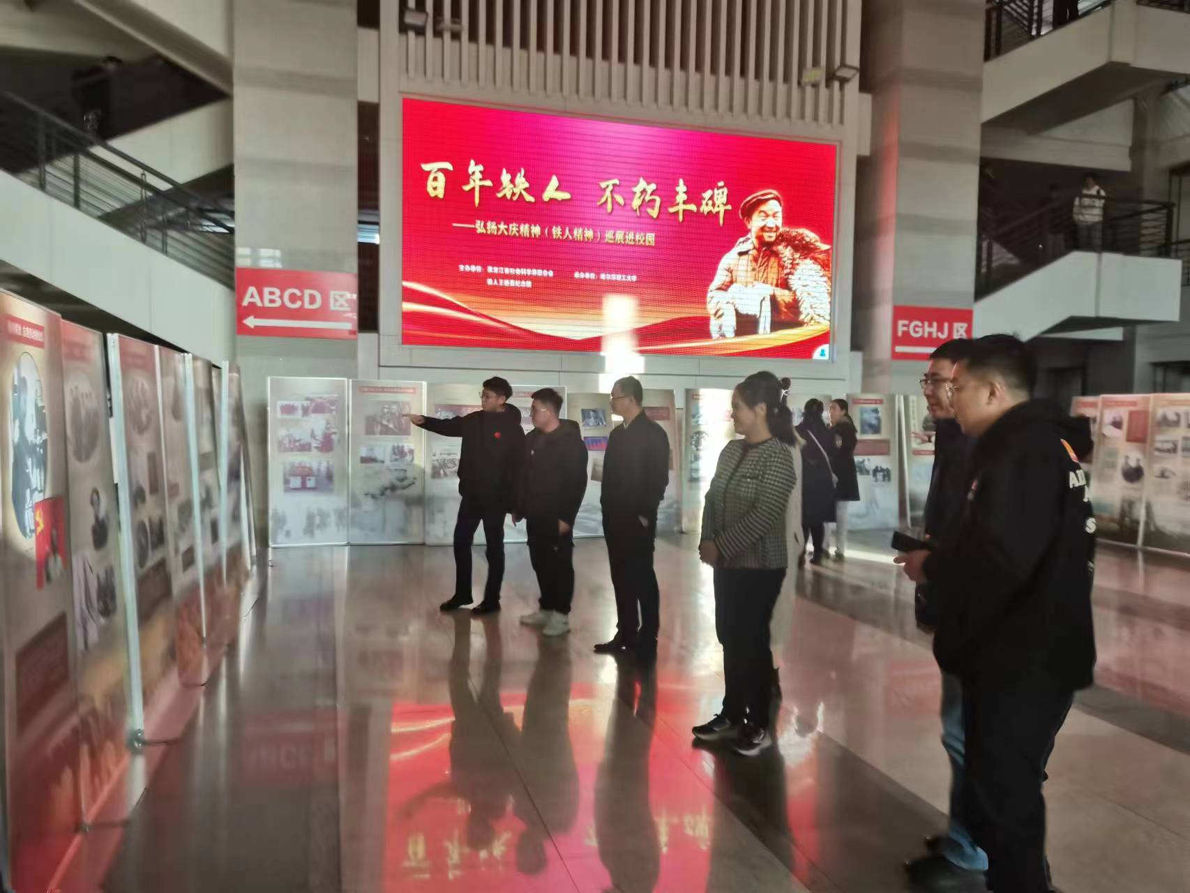 本次展览,形象再现了老一辈石油人王进喜同志为摆脱国家贫油落后,艰苦奋斗、无私奉献的家国情怀,展览以新中国石油工业发展为背景,以图片、画照的形式全面真实地展示了铁人王进喜的光辉业绩和他用毕生实践所体现的大庆精神和铁人精神。 跟随简朴而庄重的展览大厅,大家依次参观王进喜同志生平事迹和石油工人为油奋斗的感人故事。通过一幅幅图片资料,跨越时间维度回顾了祖国石油事业发展的峥嵘岁月,追寻和感受“铁人”王进喜“为国分忧、为民族争气”的爱国主义精神“宁可少活20年,拼命也要拿下大油田”的忘我拼搏精神“有条件要上,没有条件创造条件也要上”的艰苦奋斗精神、“为革命练一身硬功夫、真本事”的科学求实精神和“甘愿为党和人民当一辈子老黄牛”的无私奉献精神大家为铁人和以其为代表的石油工人们忘我拼搏的精神深深感动观看后,院党委书记顾大兴表示,在铁人王进喜诞辰100周年之际,就是要深切缅怀铁人王进喜的丰功伟绩和精神风范,坚定理想信念,传承赓续红色血脉,立足自己岗位,恪尽职守,攻坚克难,以实际行动把铁人精神贯穿于工作始终助力学校各项事业高质量发展