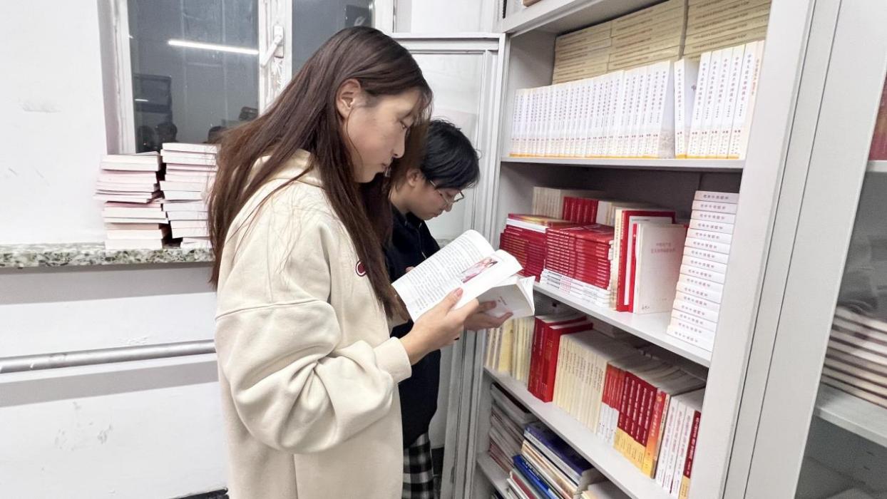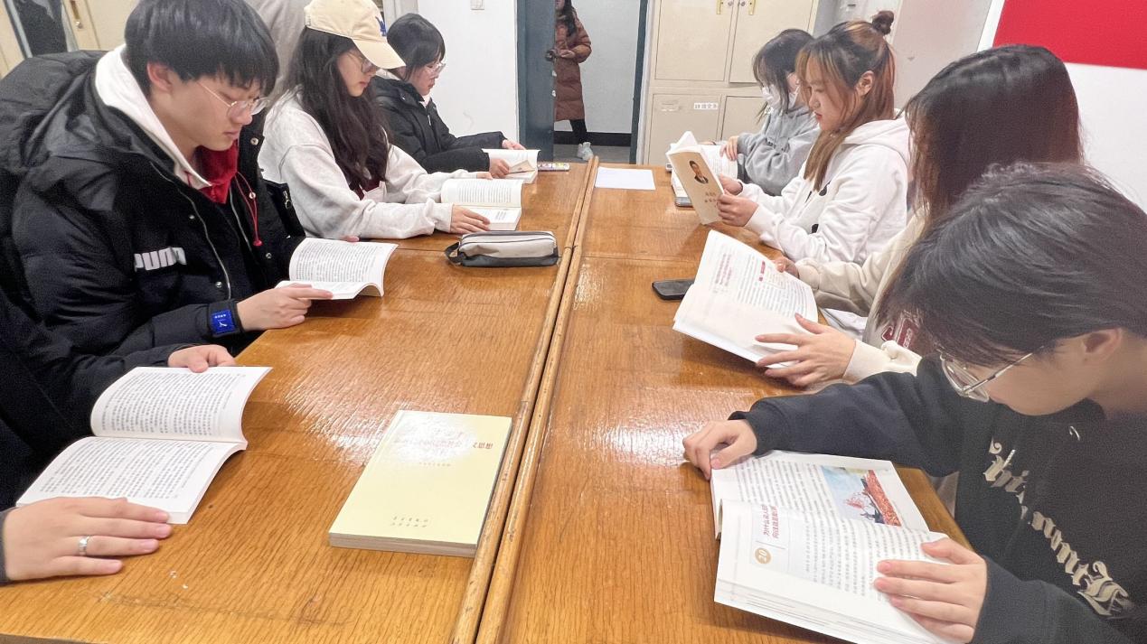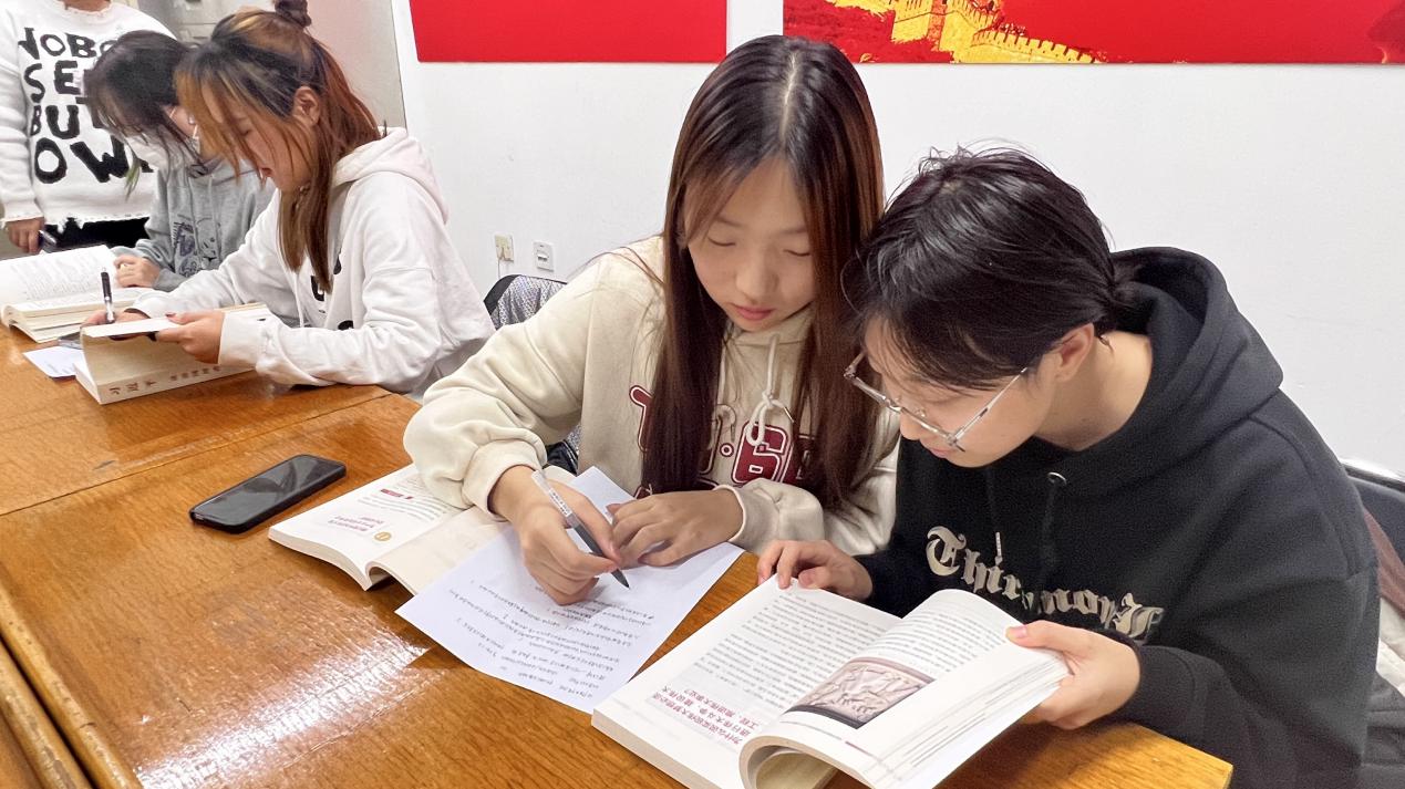 同学们在研读红色图书