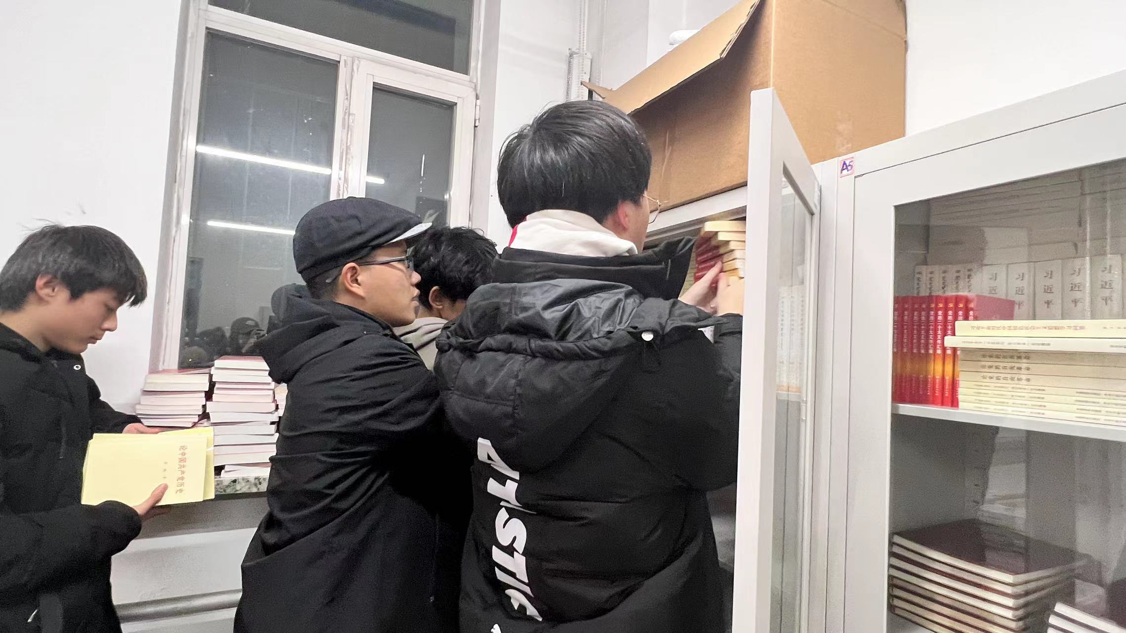 成员们进行书籍摆放