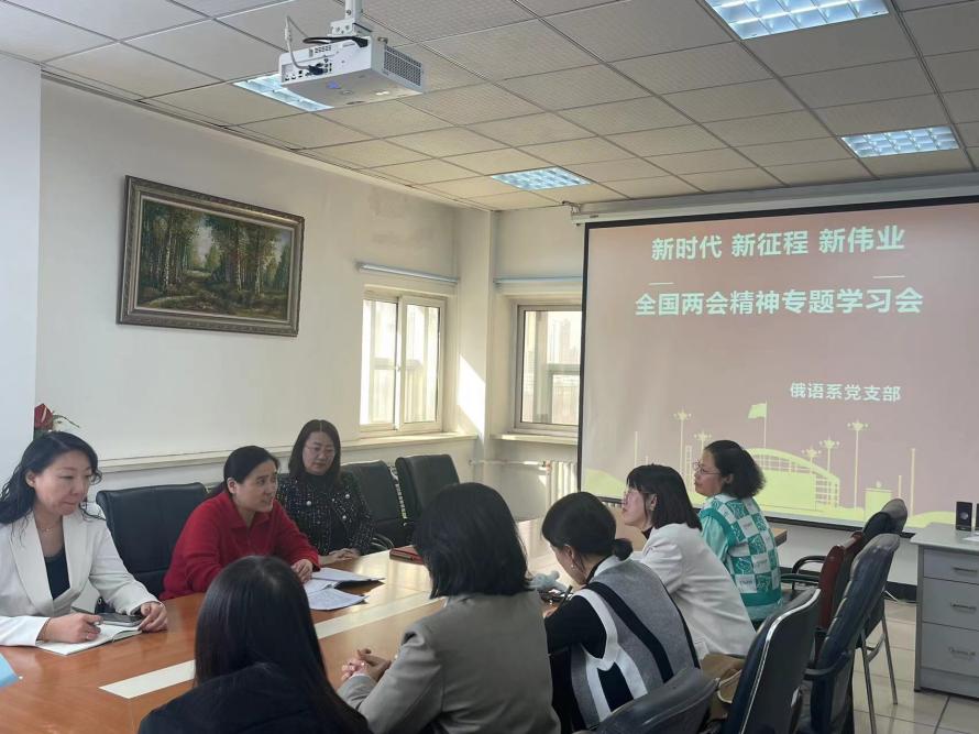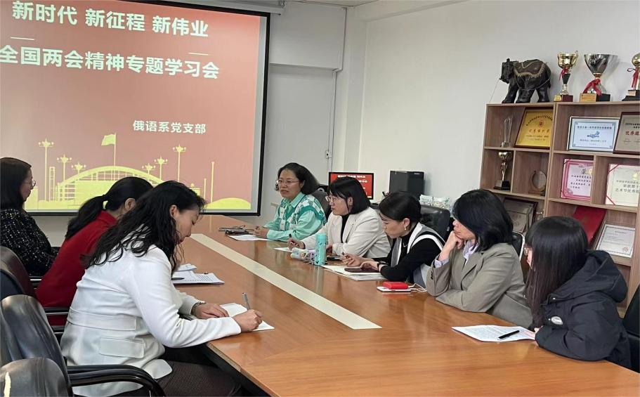 2024年全国两会圆满落下帷幕。新时代背景下,中国人民围绕在以习近平同志为核心的党中央周围,为努力实现强国建设、民族复兴的宏伟目标不断地奋斗。为学习好2024年全国两会精神,俄语系党支部于2024年3月20日召开了全国两会精神专题学习会。外国语学院党委书记顾大兴、副院长杨蕊、副院长王书蕊、俄语系党支部教师参加学习会。