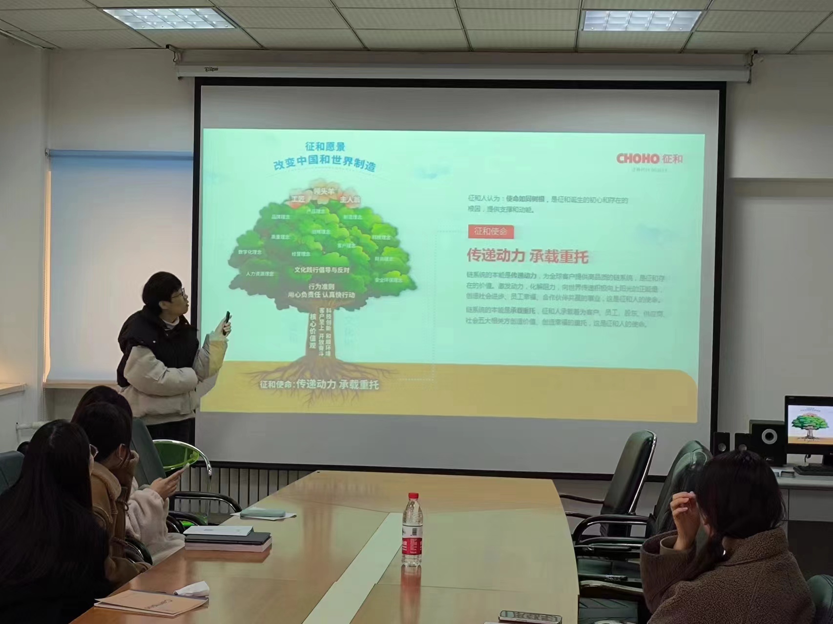 3月28日,外国语学院举办了青岛征和工业宣讲会,外国语学院2024届本科毕业生辅导员丁鑫博、2025届本科毕业生辅导员白雨卉、2024届日俄专业本科毕业生及部分2025届毕业生参加了本次宣讲活动。本场宣讲会由青岛征和工业股份有限公司校招负责人赵春美主讲。