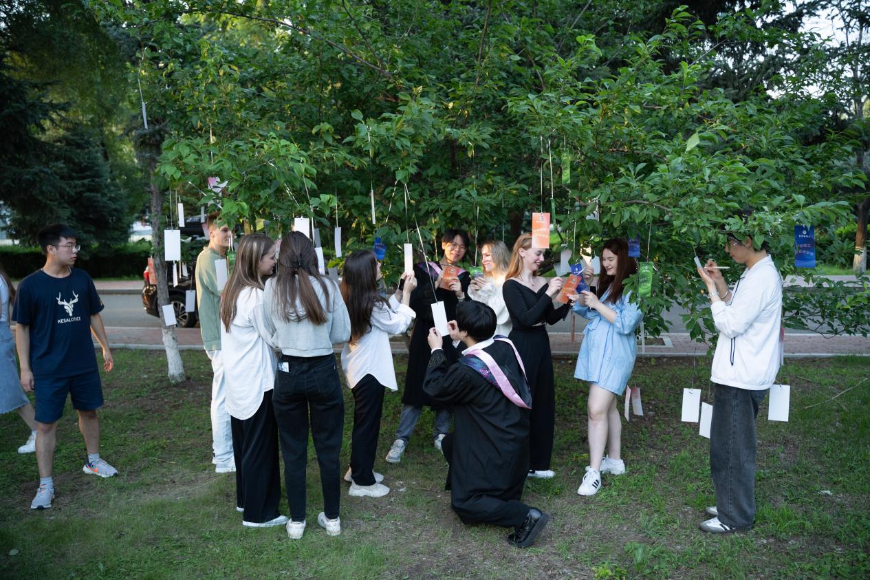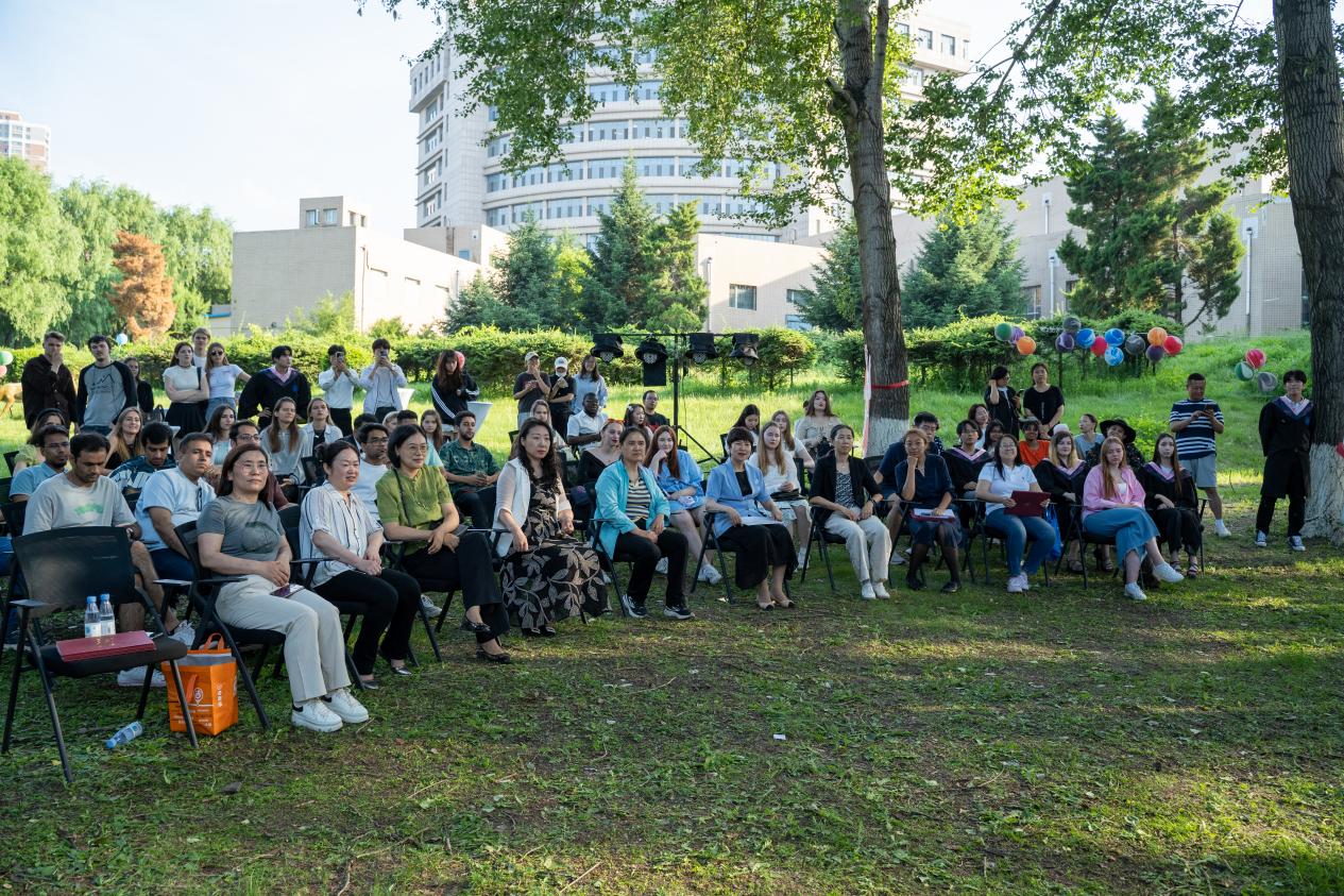 627日傍晚,外国语学院在南区图书馆后方的草坪上隆重举行了2024来华留学学历生毕业曁语言生结业典礼。在这个浪漫的毕业季里,共有六名来华留学学历生顺利毕业,二十一名来华留学语言生完成了学业并顺利结业。外国语学院党委书记顾大兴、院长马艳辉、副院长王书蕊、办公室主任李竖新以及对外汉语系全体教师共同出席了本次结业式。