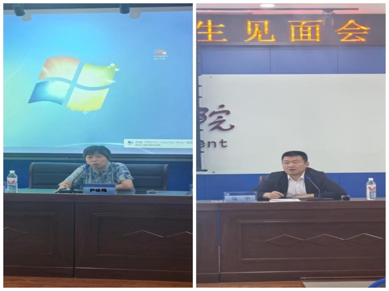 科研秘书尹咏梅为新生做了教学工作相关的指导,详细介绍了自己分管的工作内容。同时,针对研究生期间可能遇到的各种问题,给出了宝贵的意见和建议。辅导员马宁传达了近期的工作安排,对请假和评奖评优等工作做了详细的介绍。鼓励新生尽快适应新环境,合理规划研究生生活珍惜时光,不负韶华。