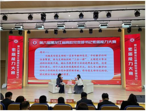 924日至26日,黑龙江省委教育工委主办的第六届高校党支部书记素质能力大赛成功举办,我英语系教师党支部书记张春烨荣获“双带头人”教师党支部书记赛道优秀奖!为我院争得荣誉。学校党委组织部带队到现场参加并观摩比赛,全校基层党组织书记和党务工作者通过网络直播在线观看决赛实况。
