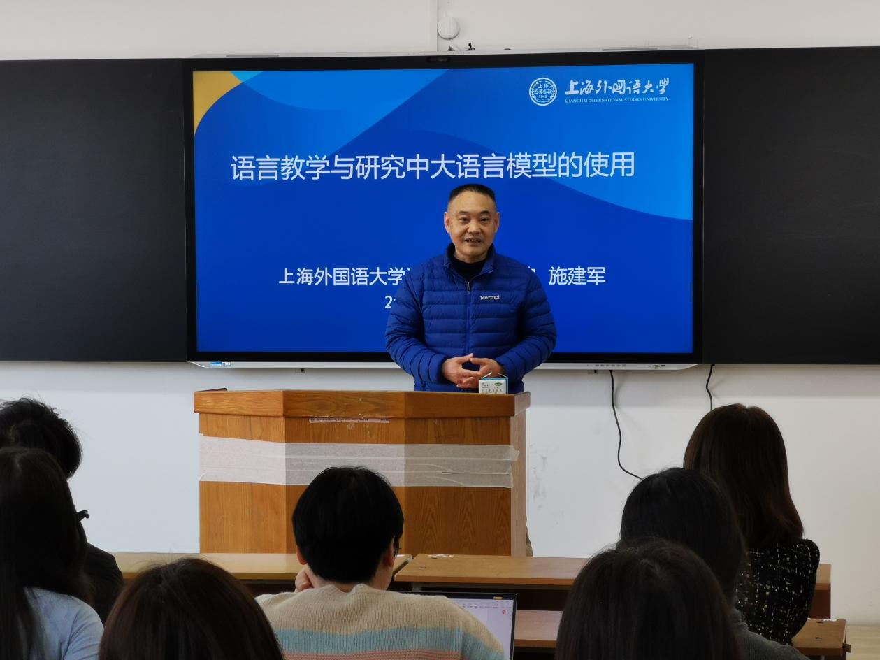 随着ChatGPT等语言智能工具的出现,大语言模型也引起了广泛关注。为深化师生对人工智能技术的理解,增强实际应用能力,3月6日下午,在外国语学院日语系刘宇楠主任邀请下,上海外国语大学语言研究院博士生导师施建军教授为我校作题为“关于语言教学研究中大语言模型的使用”的学术讲座。外国语学院师生参加讲座学习。
