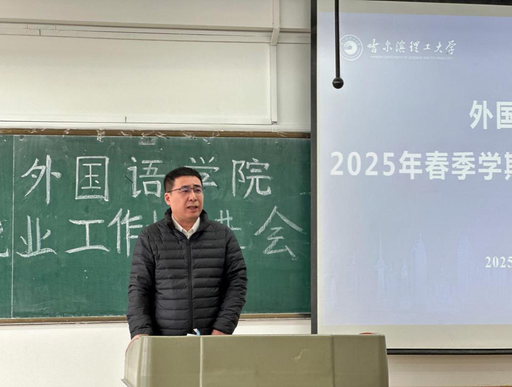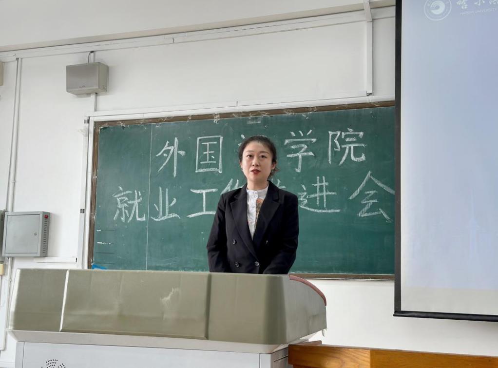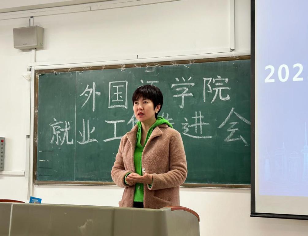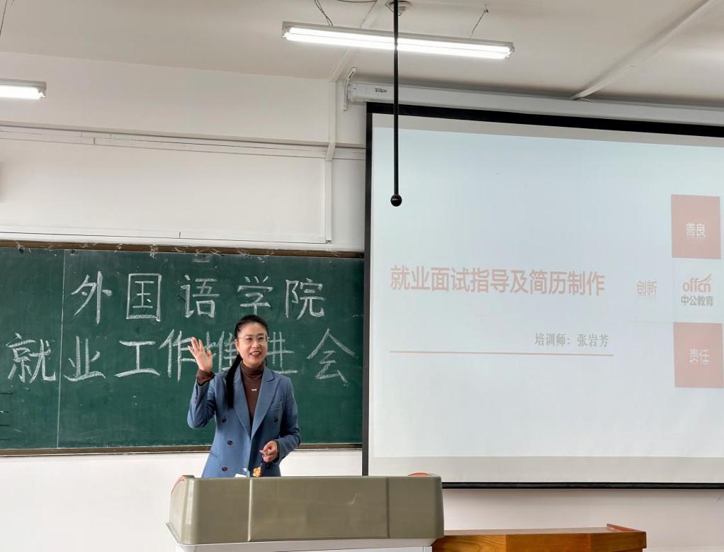 为深入学习贯彻习近平总书记关于促进高质量充分就业的重要论述,积极响应2025届全省高校毕业生就业工作推进会议精神,促进外国语学院2025届毕业生高质量就业,3月12日,外国语学院召开2025年春季学期就业工作推进会。外国语学院院长马艳辉出席会议,2025届毕业班辅导员、2026届毕业班辅导员及2025届毕业生代表参加会议,学校就业服务中心金丽欢、中公教育集团人力总监张岩芳受邀出席会议并发言,会议由学院党委副书记蔡野主持。