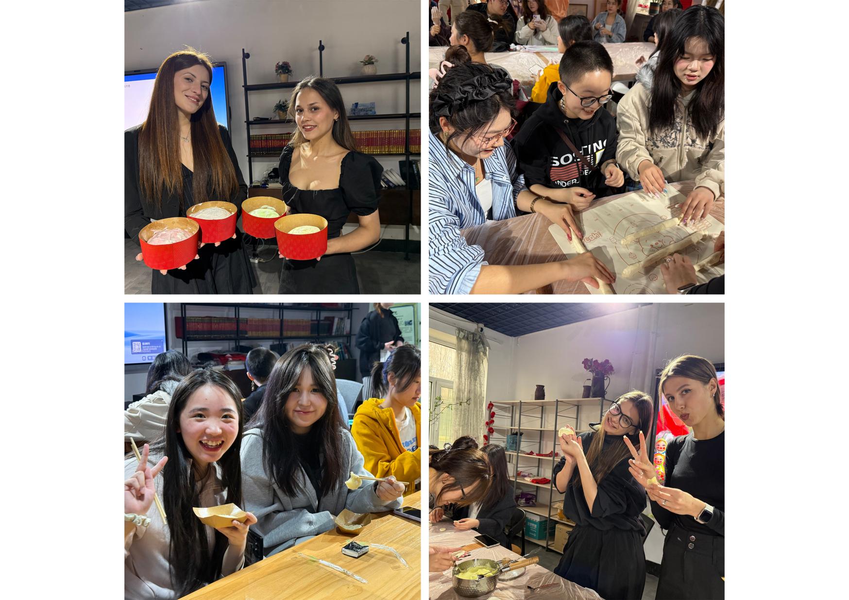 最后的美食互动将气氛推向高潮,俄罗斯同学手把手教中国同学包俄式饺子,大家围坐一团一边制作,一边分享趣事。等待饺子出锅的间隙大家一起做了俄罗斯游戏,情谊也在这一刻迅速升温。此外,俄罗斯的同学还贴心准备了Блины(俄式煎饼)、传统节日蛋糕供大家品尝。在欢乐氛围中,这场文化盛宴圆满落幕。