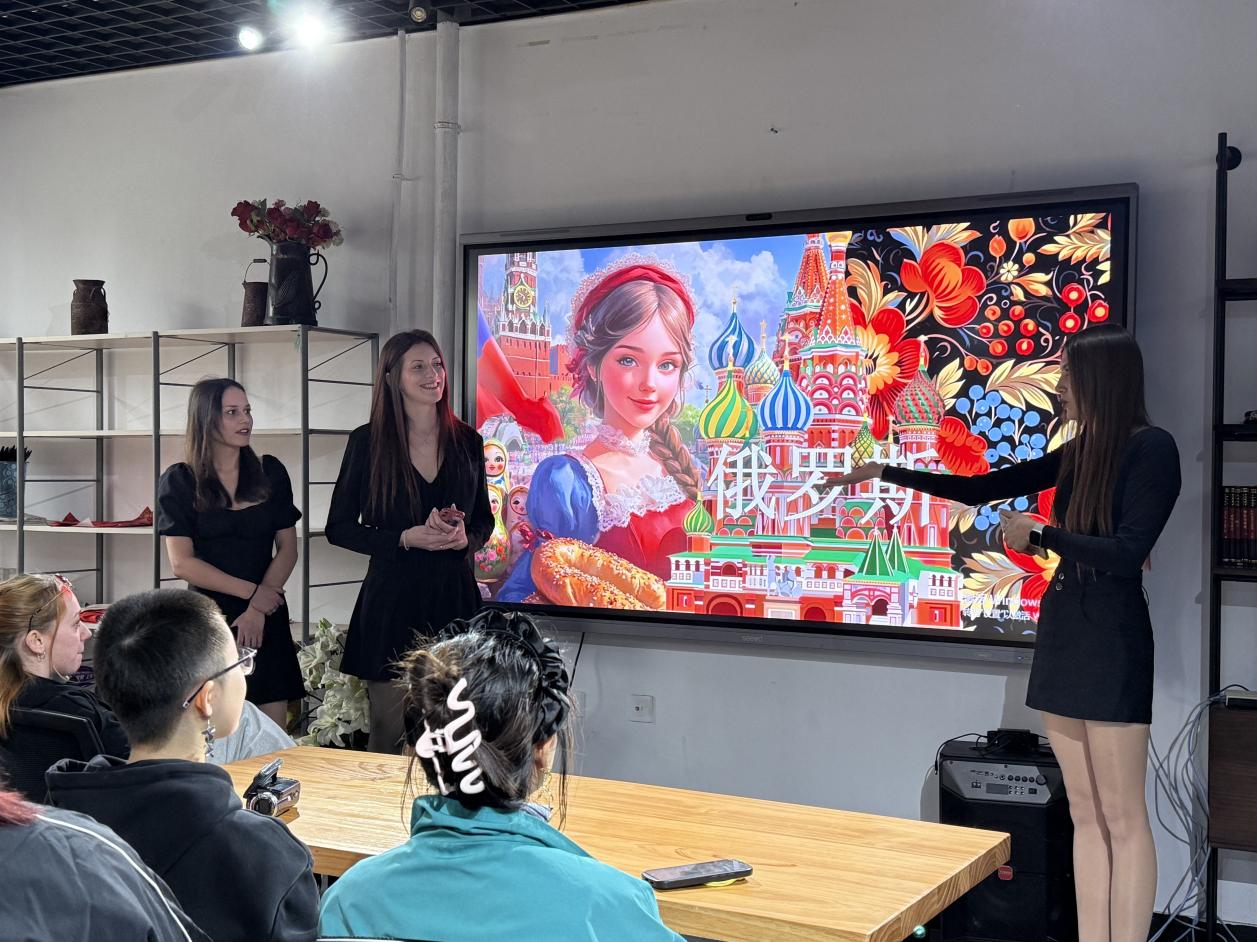 活动中,她们化身 “家乡推荐官”,用精美的图片展现俄罗斯各地绝美风光,仿佛让大家一秒穿越到俄罗斯。教学俄语问候交流环节,更是趣味十足,现场充满欢声笑语。