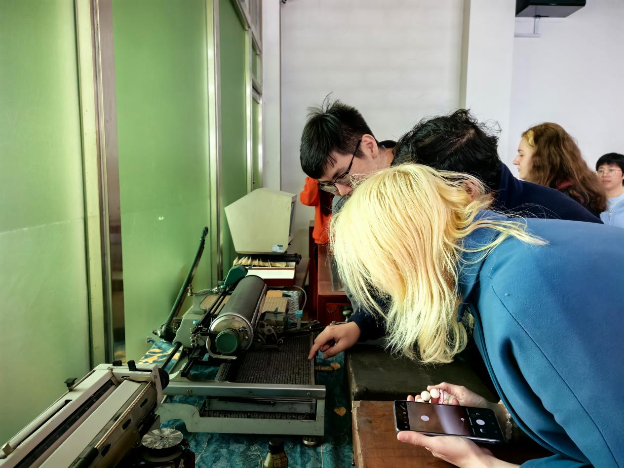 活动现场,留学生们首先驻足于馆藏清代监本《四书》展柜前。图书馆老师结合文献版本特征,系统讲解了 “四书” 的经典构成、文化内涵及儒家思想脉络,从孔孟哲学延伸至中华传统文化体系,为留学生构建起立体的思想认知框架。随后工作人员详细介绍了铅字打印机的历史沿革与工艺特点,引发留学生们的浓厚兴趣。最后留学生们手持毛笔,在宣纸之上认真书写《四书》经典语句或心仪诗词,在一笔一划间感悟古人智慧,沉浸式感受中华书法艺术的独特魅力。
