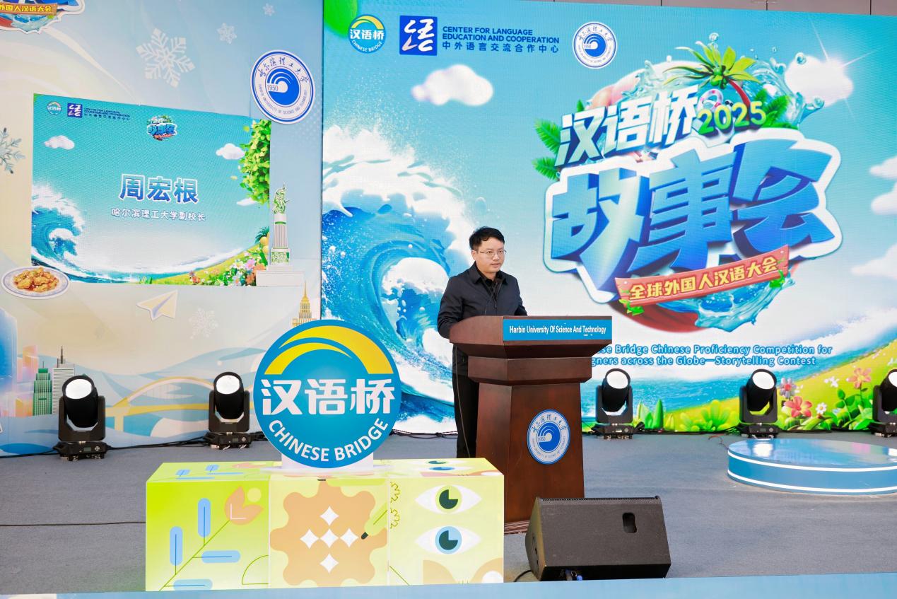 5月10日,由教育部中外语言交流合作中心主办,哈尔滨理工大学承办的2025“汉语桥”全球外国人汉语大会——故事会东北预赛,在哈尔滨理工大学隆重举办。哈尔滨理工大学副校长周宏根发表致辞,黑龙江省教育厅对外合作与交流处副处长吴昊、教育部语言合作与交流处嘉宾莅临现场,国际合作与交流处处长邵杨、外国语学院领导班子出席开幕式。比赛特别邀请哈尔滨师范大学国际教育学院院长张晓涛、哈尔滨广播电视台《哈尔滨新闻》播音组副组长王兴慧、政协哈尔滨市委员会文史馆宣教部主任刘夏担任评委。