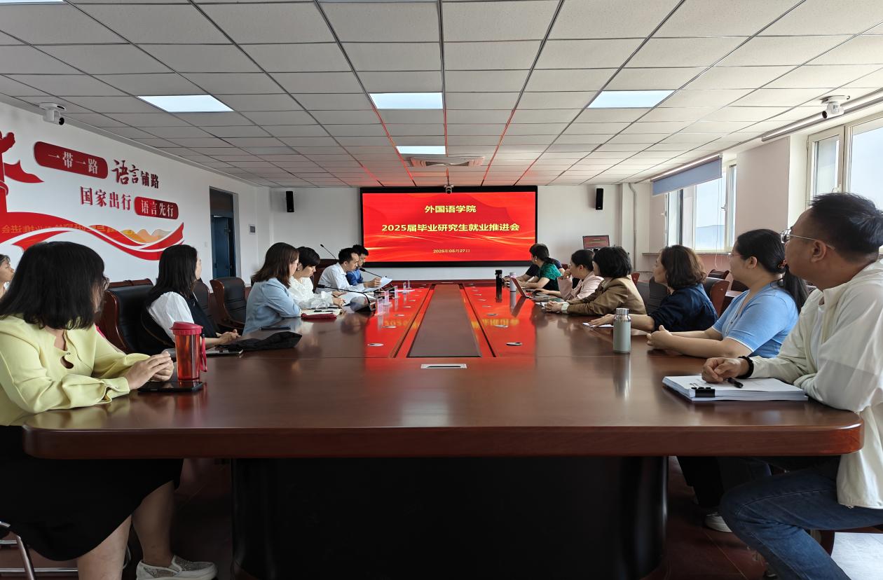 为深入贯彻教育部、省教育厅关于做好2025届高校毕业生就业工作的部署要求,全面落实学校就业工作会议精神,扎实做好外国语学院2025届毕业生就业工作,助力毕业生高质量充分就业。5月27日,外国语学院在南区1-618会议室召开2025届毕业研究生就业工作推进会。学院党委书记初田辉、院长马艳辉、党委副书记张宏亮、副院长杨蕊、研究生辅导员马宁及全体研究生导师参加会议,会议由张宏亮主持。