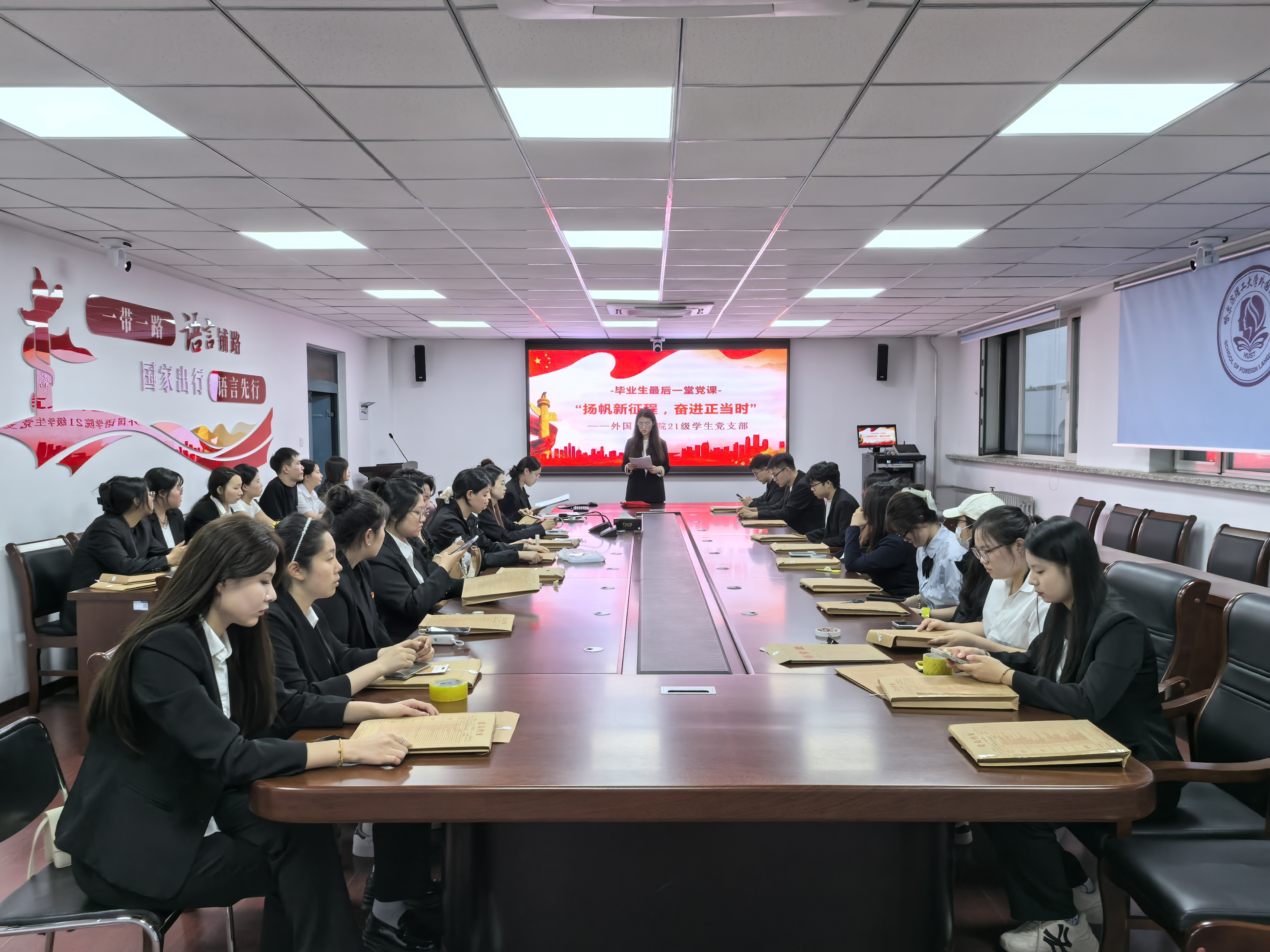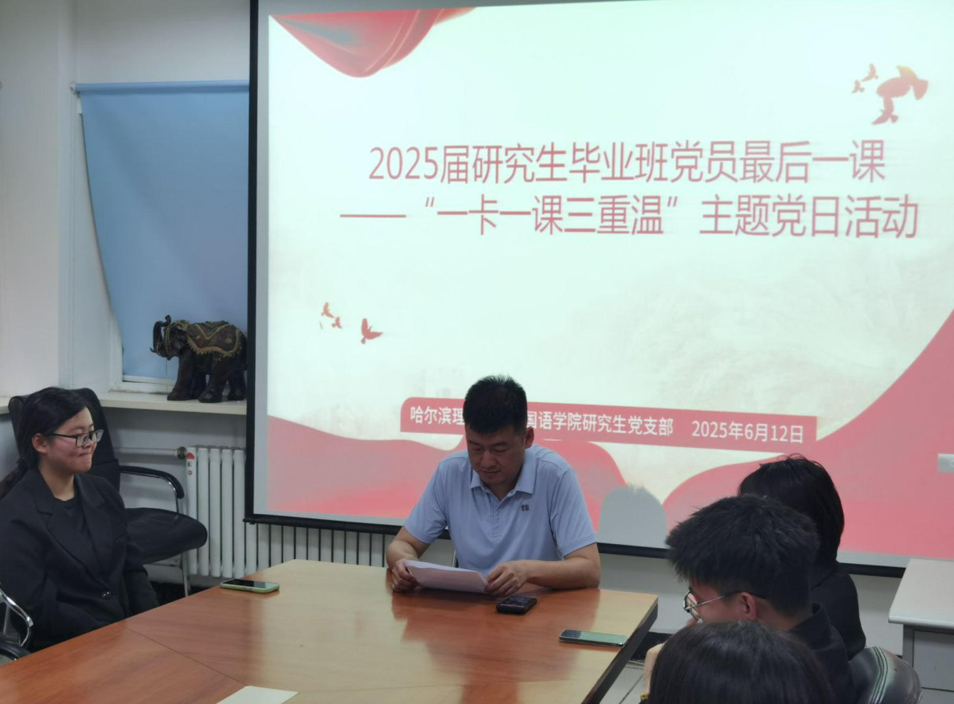 为切实深化开展学生党员党性教育,强化党员身份意识与责任担当,引导毕业生党员坚定理想信念,发挥先锋模范作用。6月12日,外国语学院党委组织开展毕业生党支部“一卡一课三重温”党性教育活动, 21级学生党支部书记、2025届本科毕业生辅导员白雨卉,研究生党支部书记、2025届硕士毕业生辅导员马宁,分别在南区1号楼618和南区1号楼701室同步开展,学院党委副书记张宏亮出席活动,为即将踏上人生新征程的毕业生党员上了一堂深刻而难忘的“毕业前最后一次党课”。