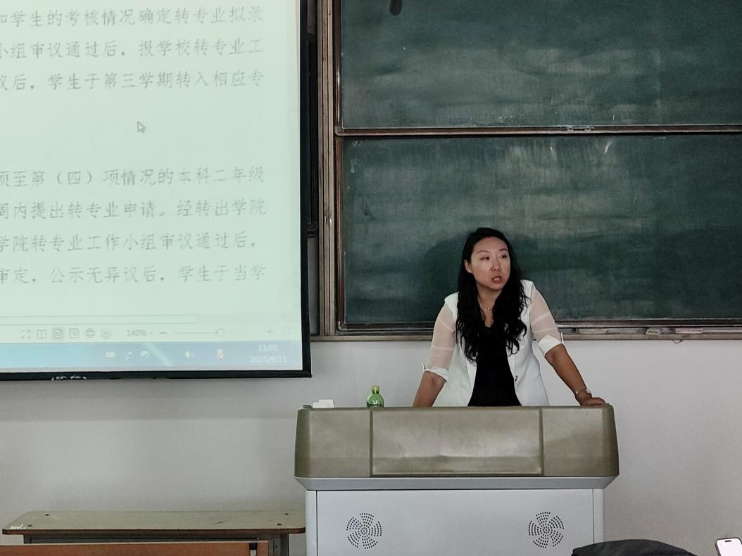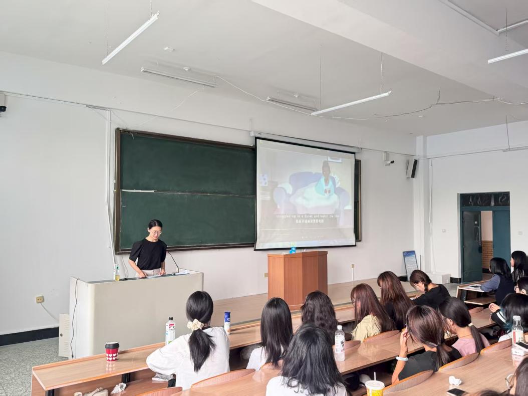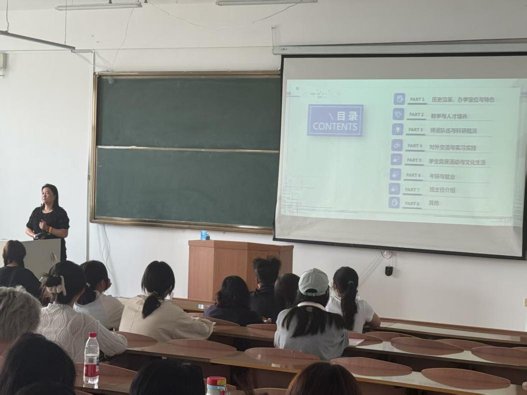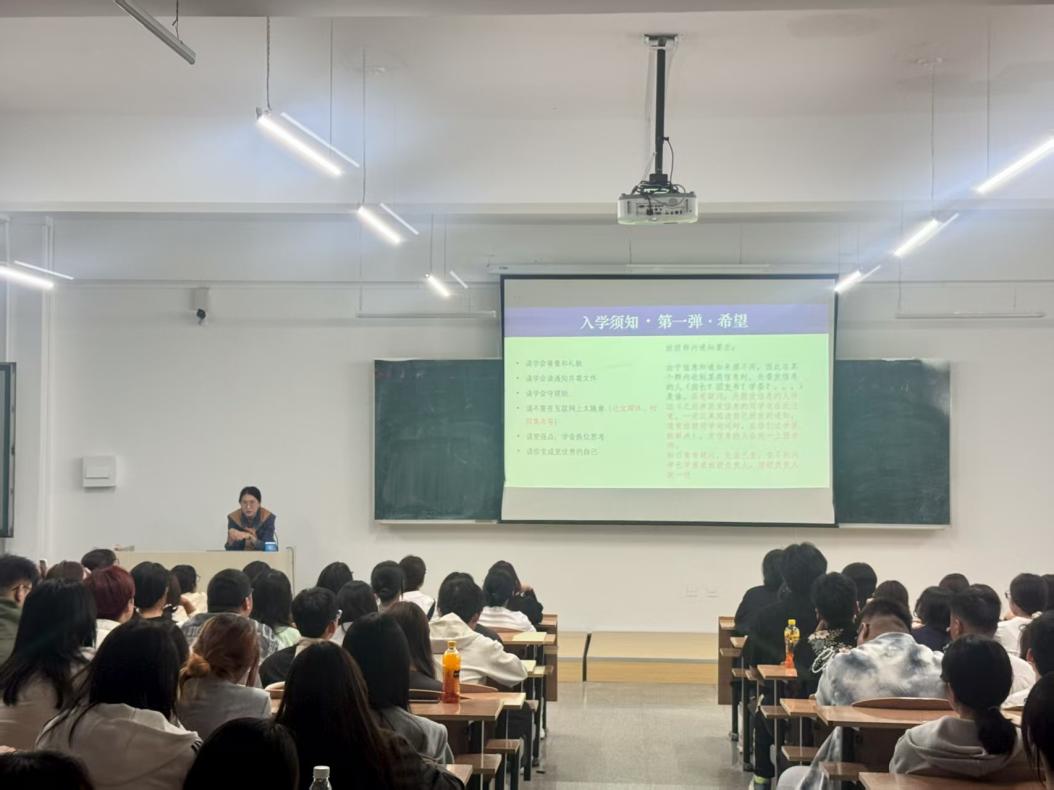 9月11日,外国语学院副院长王书蕊为2025级新生讲授学习素养教育。王书蕊详细介绍了新生班主任团队,重点解读了学籍管理与学业考核内容,并提醒学生密切关注各类通知的发布渠道和重要文件的查阅方式。她鼓励各位新生要尽快转变角色,科学规划时间、注重日常积累,在外国语学院度过充实而精彩的四年时光。