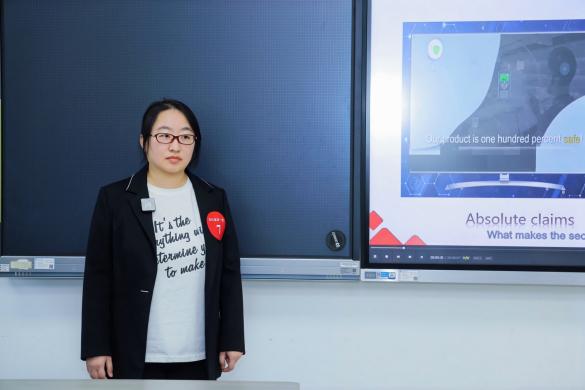 现场交流环节,参赛选手需依次完成微课作品展示与说课两大核心环节。各团队充分运用多样化信息技术教学手段,将先进教学理念与生动教学内容深度融合,直观呈现外语微课的创新形态与教学价值。王泳钦团队的微课作品在众多佳作中特色鲜明,团队创新性引入 “模糊限制语(Hedging)” 理论,并结合教学实践构建原创的C.A.R.E.模型,通过系统化教学设计,帮助学生高效掌握伦理沟通的核心技能,精准回应职场与学术场景中常见的复杂伦理挑战。该微课 “教学效果扎实、可测” 的显著特点,得到了评审专家的高度认可。北京科技大学外国语学院王娜教授作为本科英语组专家代表,在赛后点评中特别强调:“在讲解核心知识点后,立即搭建情景任务,让学生运用刚学的C.A.R.E.模型完成句子创作与应用实践,这种设计不仅让教学效果看得见、可验证,更是实现教学闭环的关键一环,充分彰显了微课的实用价值。”