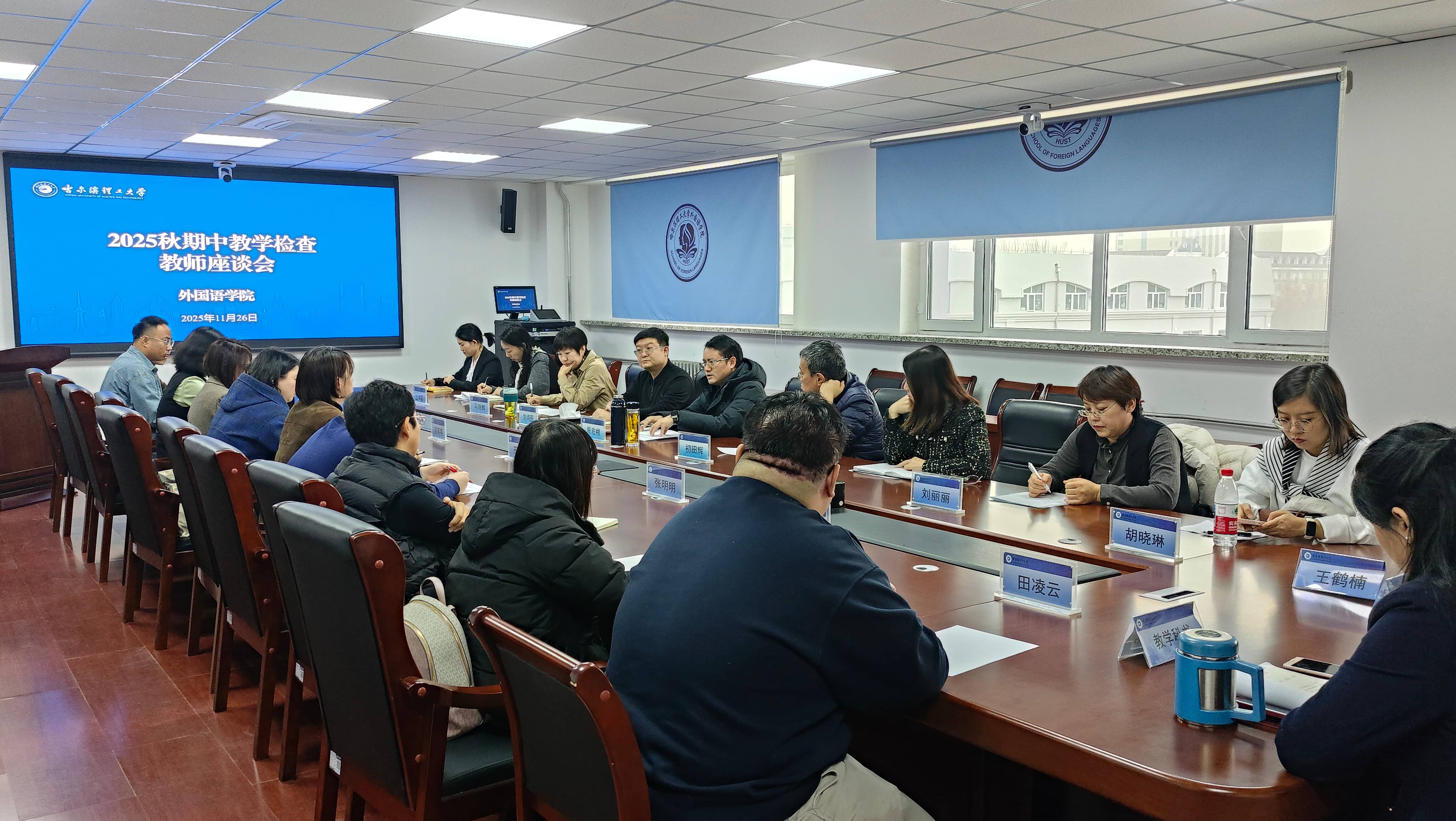 11月26日,副校长周宏根深入联系点外国语学院,出席期中教学检查师生座谈会,聚焦教学质量提升、人才培养优化、教学及生活环境改善等核心议题,倾听师生心声、破解实际难题、凝聚发展共识。座谈会分教师场、学生场依次召开,由外国语学院院长马艳辉主持,教务处相关负责人、学院领导班子成员、各系部负责人及师生代表参加会议。