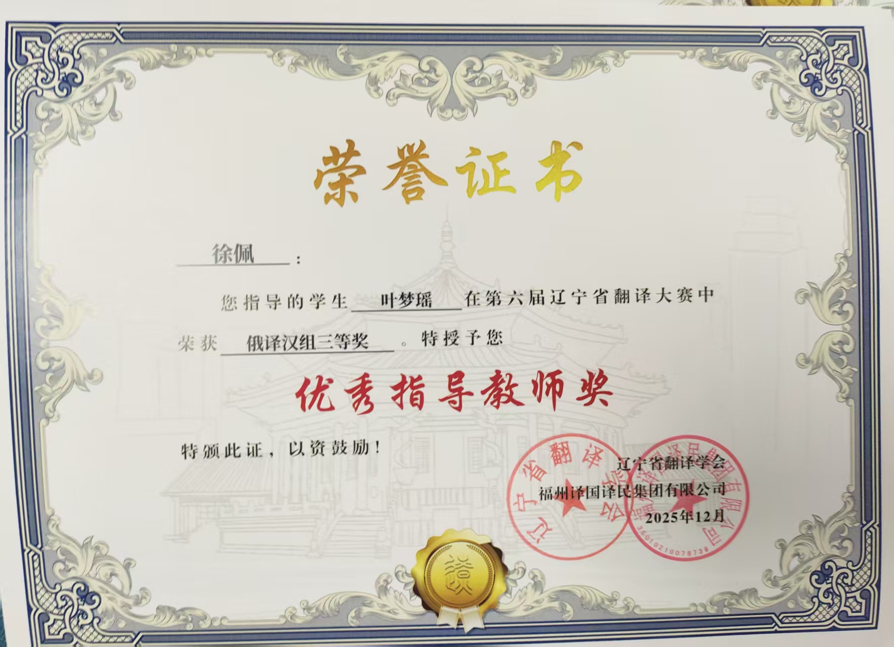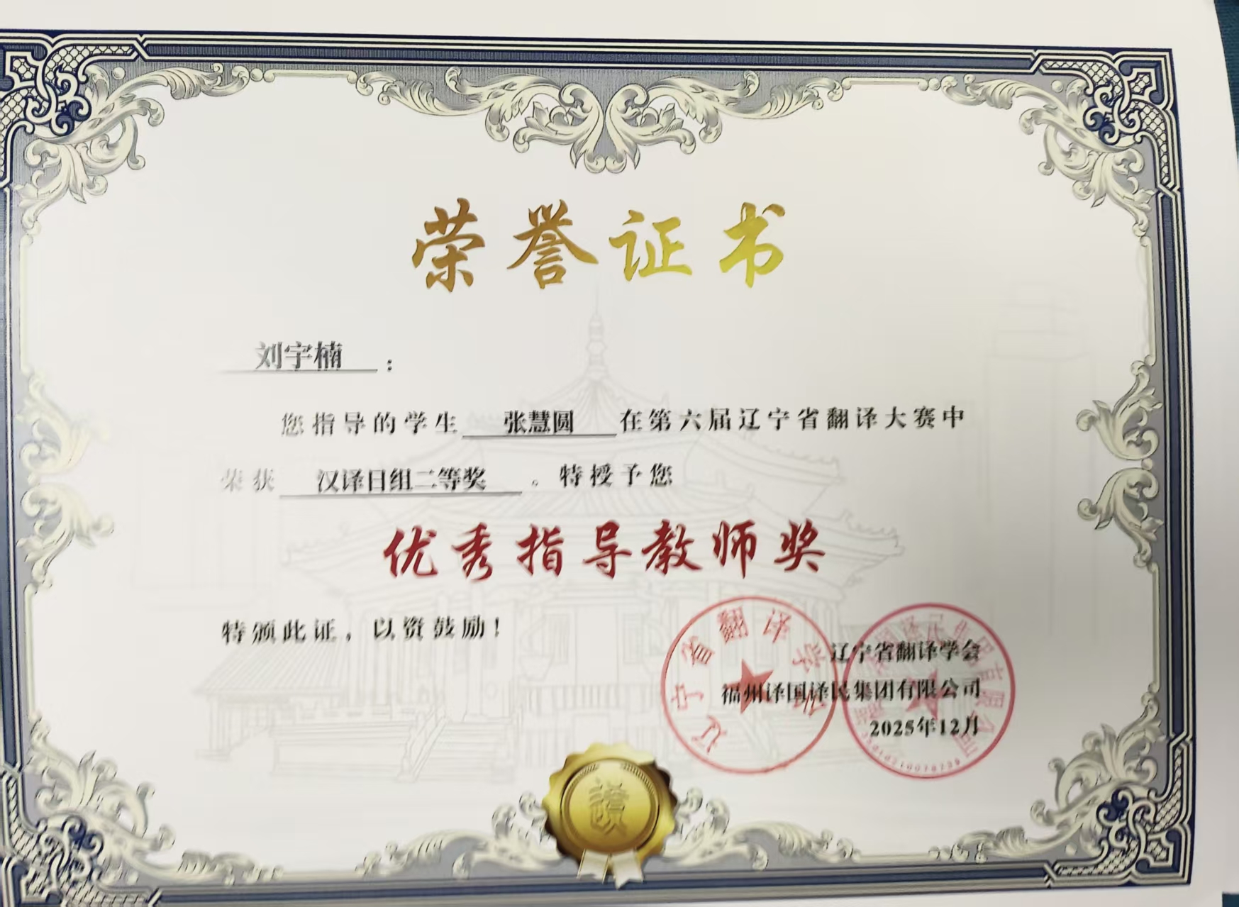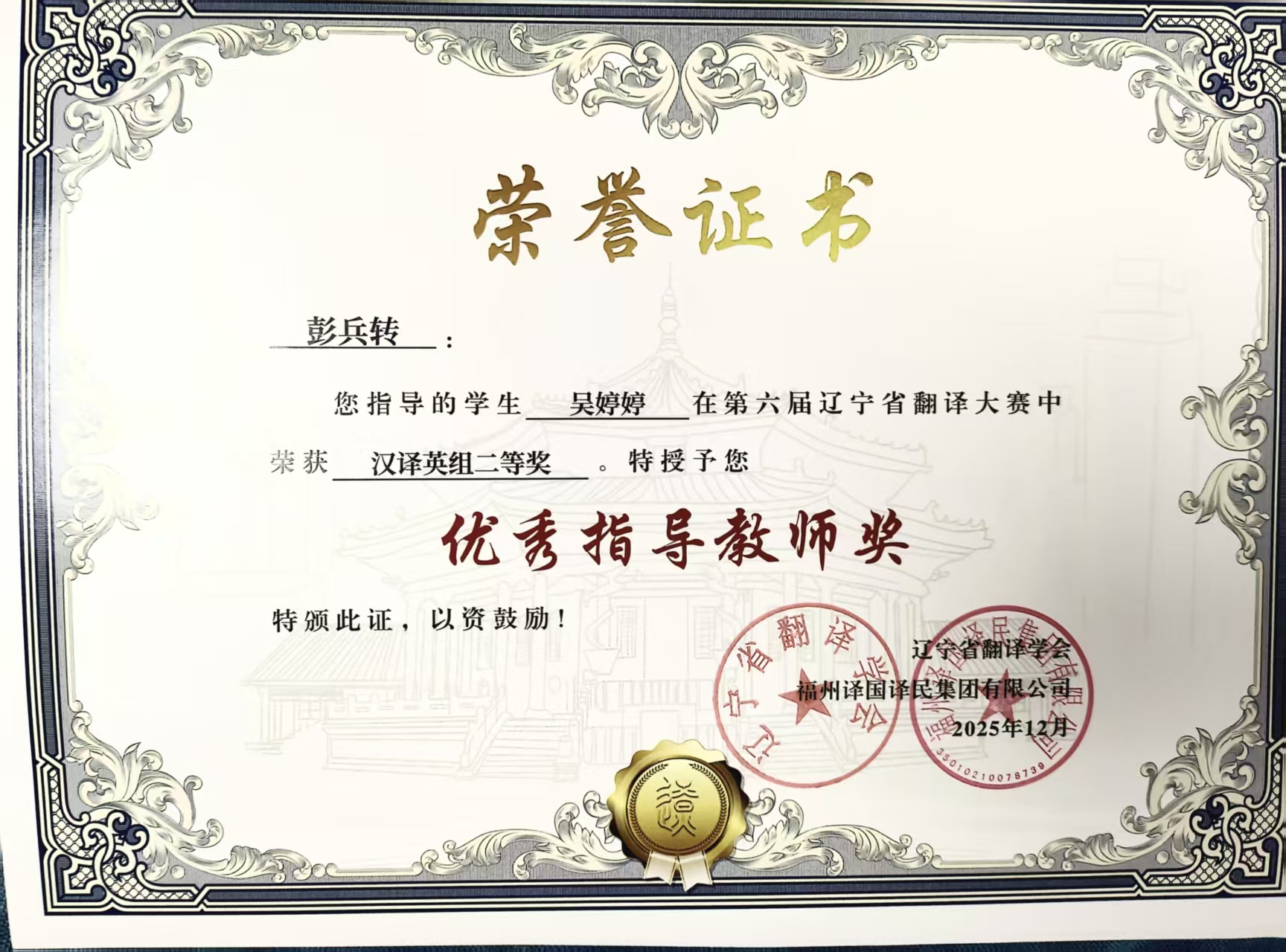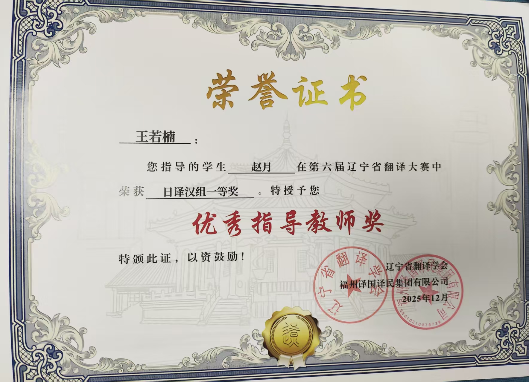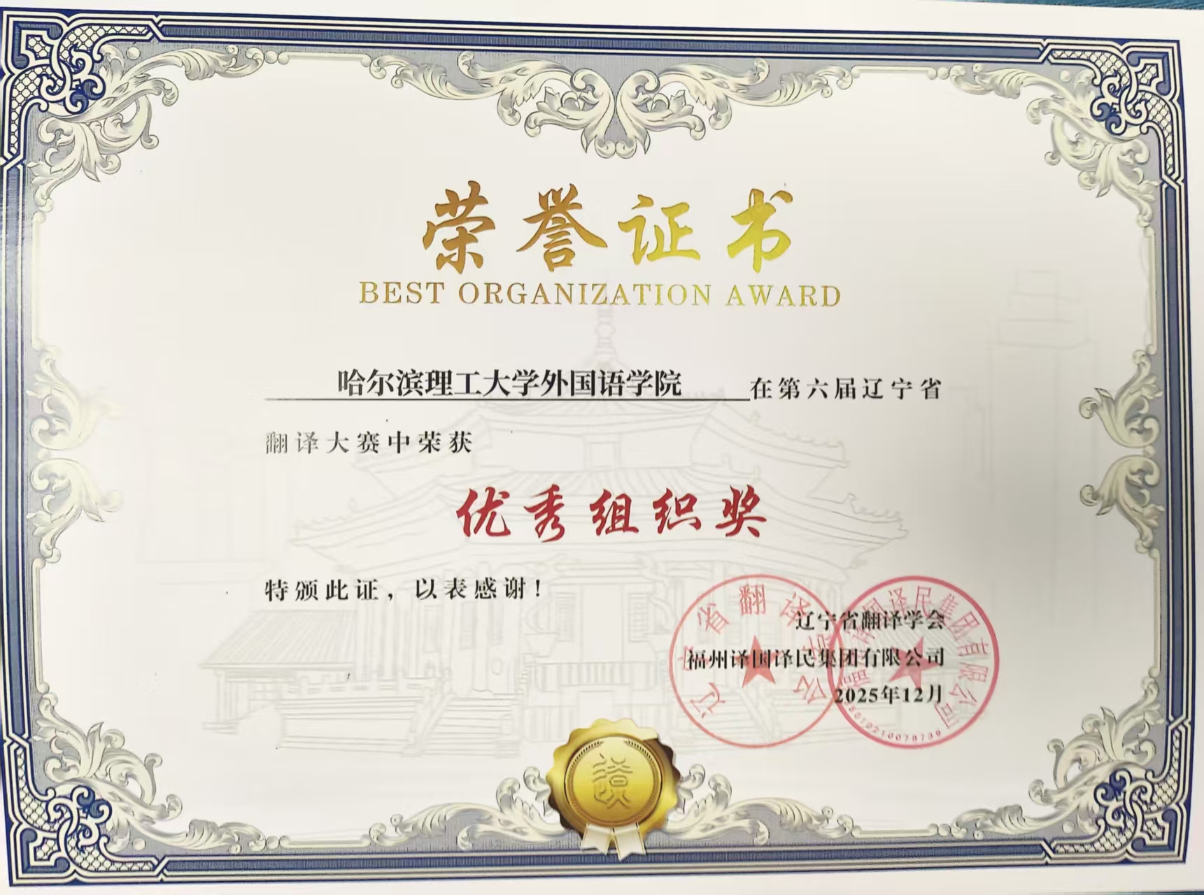 近日,第六届辽宁省翻译大赛圆满落幕,我院学子凭借扎实的语言功底、娴熟的翻译技巧与良好的综合素养,在比赛中表现突出,喜获佳绩,共计17人获奖,其中一等奖1人、二等奖4人、三等奖12人。14位教师获评“优秀指导教师”,学院亦获评“优秀组织单位”。