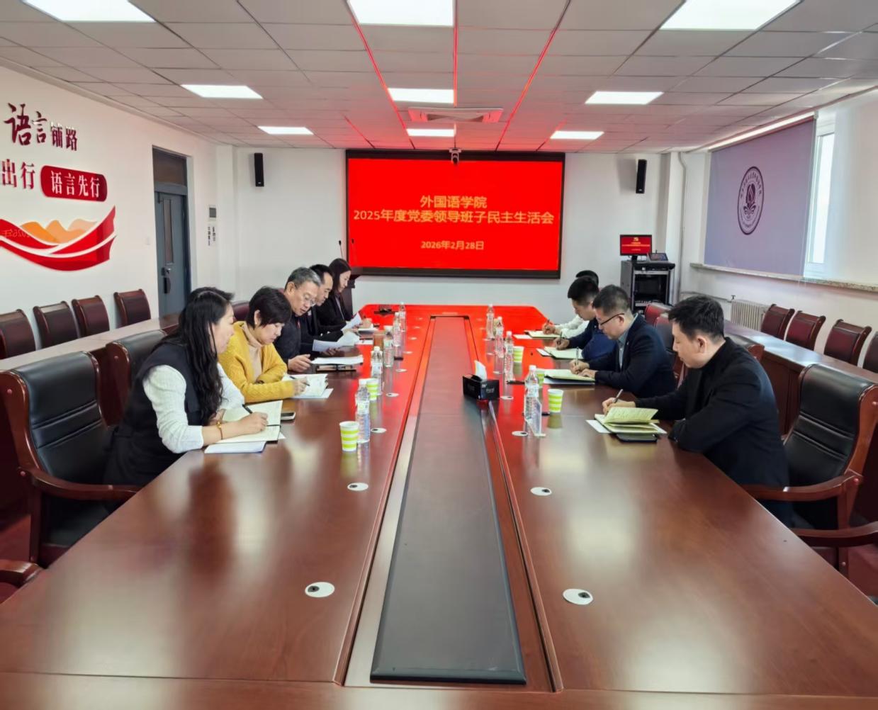 2月28日上午,外国语学院党委在南区一号楼618会议室召开2025年度领导班子民主生活会。副校长胡军出席会议并作点评讲话,党委组织部副部长庞达、纪委办公室副主任赵运平、党委组织部王长宇到会督导,学院领导班子全体成员参加会议,会议由学院党委书记初田辉主持。