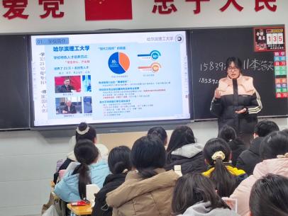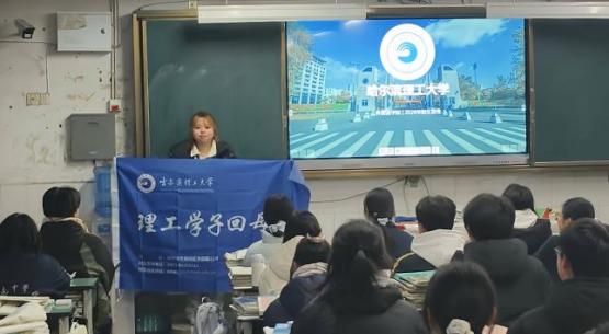 活动中,学子们分组抵达各地高中母校,通过PPT演示、经验分享、互动答疑、实物展示等丰富多样的形式,全方位、多角度向学弟学妹们推介哈尔滨理工大学。宣讲过程中,学子们围绕学校核心办学特色展开详细介绍,重点传递学校“育人为本、特色立身、科教融合、装备报国”的办学理念,深入解读王大珩先生“忠诚祖国、献身科学、淡泊名利、寻优勇进”的大珩精神,让学弟学妹们深刻感悟学校的文化底蕴与精神内核。同时,详细介绍学校“现代工程师的摇篮”这一人才培养定位,以及“厚基础、强实践、有责任、勇创新”的人才培养目标,展现学校鲜明的育人导向。在学科优势方面,重点宣讲学校突出的机电特色、鲜明的国防特色,介绍学校已有23个专业获批国家级一流本科专业建设点、17个专业通过工程教育认证的过硬实力,涵盖电气工程及其自动化、机械设计制造及其自动化等多个优势领域,全方位彰显学科建设成效,同时解读学校服务国家“五大安全”和东北老工业基地振兴的服务面向,全面展现学校的办学实力、发展格局与责任担当,让学弟学妹们全方位了解哈理工的优势与潜力,树立对学校的清晰认知与向往。