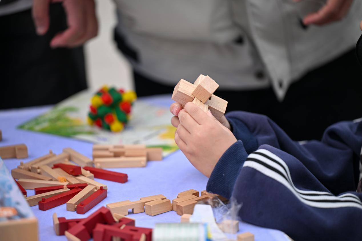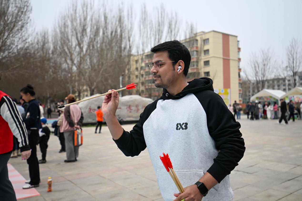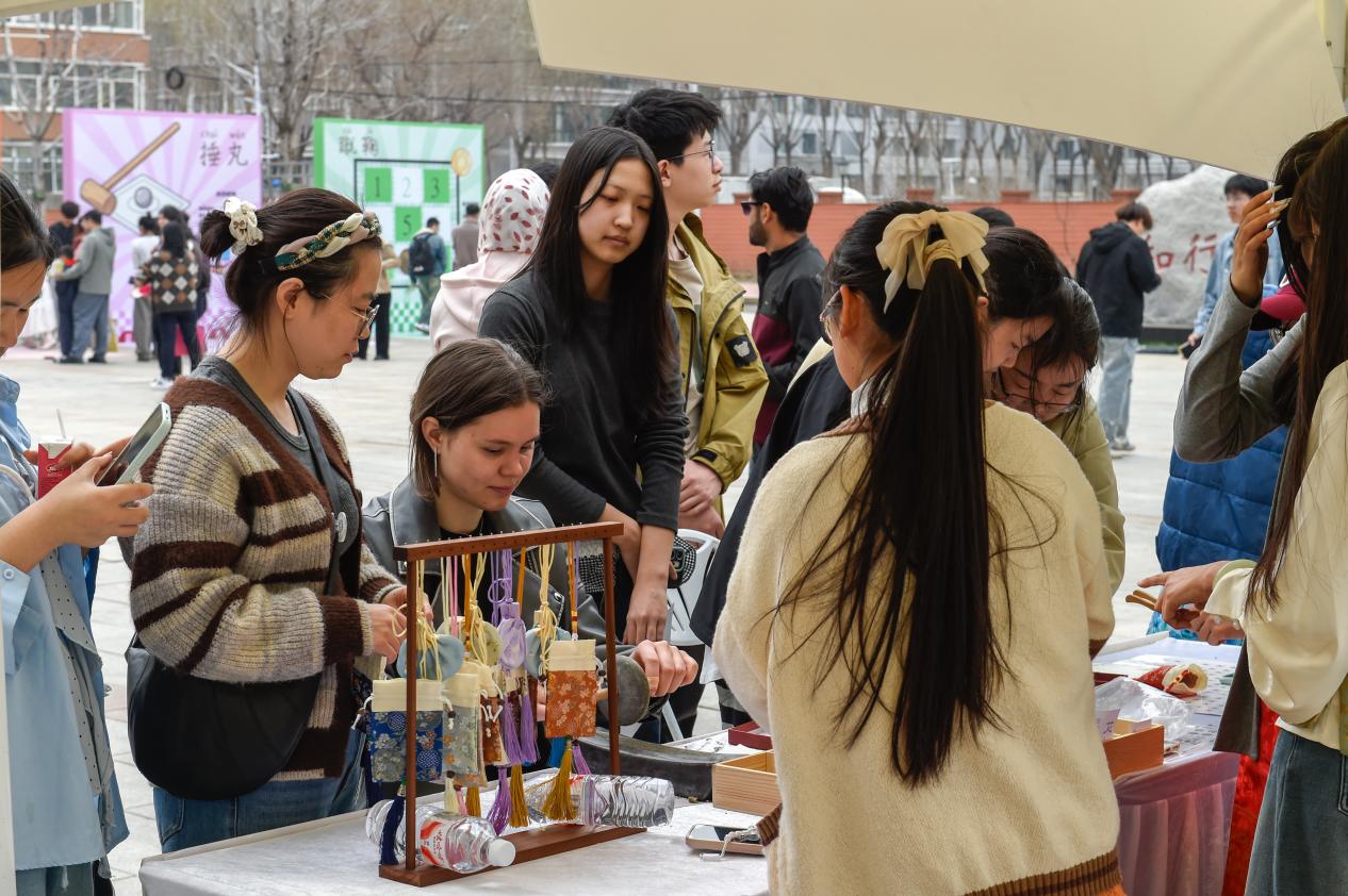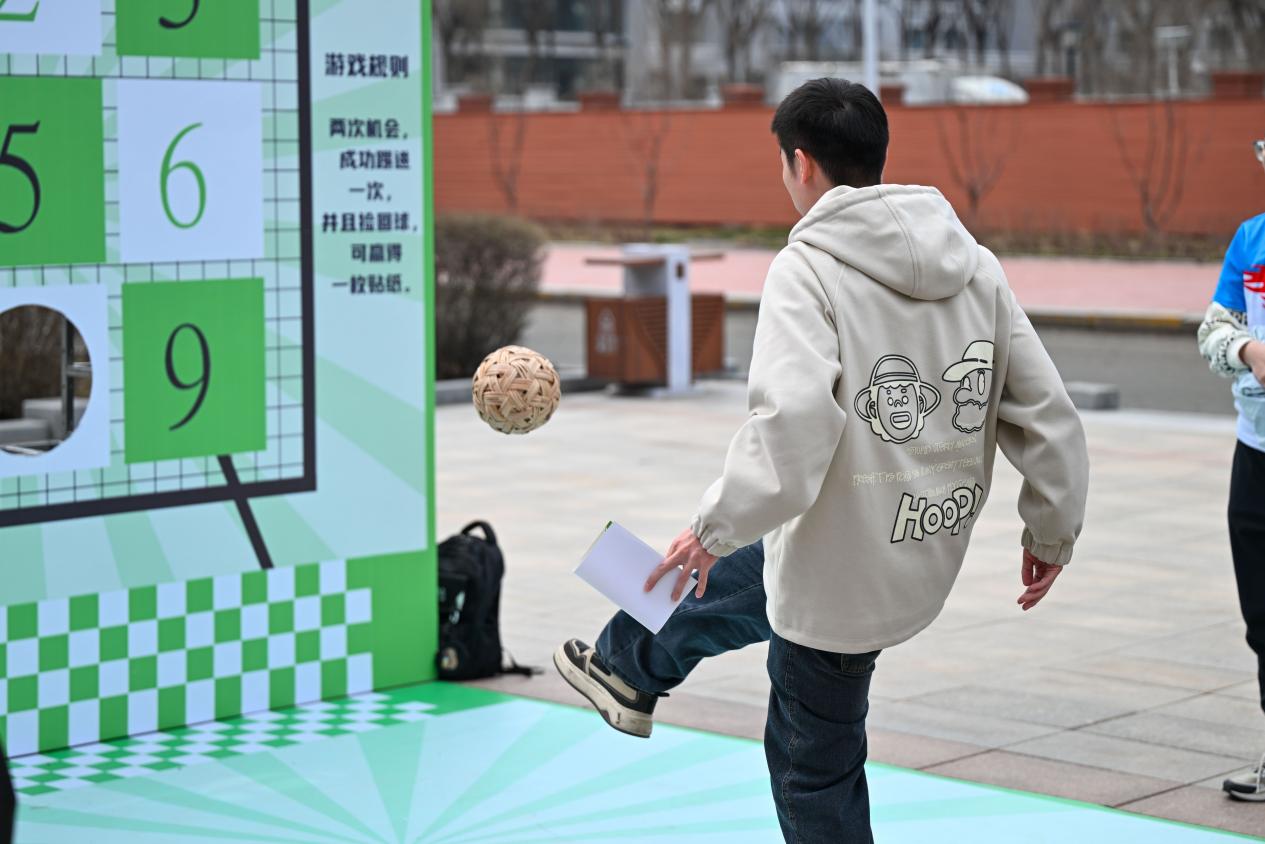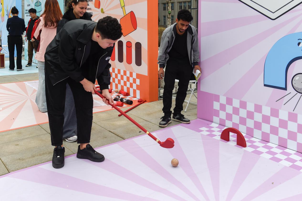 传统游戏区热闹非凡,欻嘎拉哈的清脆声响里,留学生们跟着志愿者学习翻抛技巧,在欢声笑语中触摸中国北方民俗温度;锤丸场上,大家手持球杆躬身推杆,体验古人“高尔夫”的雅致乐趣;木射游戏区,绘有善恶文字的木柱排列整齐,学子们瞄准目标投掷木球,在趣味竞技中感悟传统伦理观念;鲁班锁挑战区,在榫卯结构的精密咬合中拆解拼装,古老工匠智慧与现代理工思维默契交融,尽显协作魅力。
