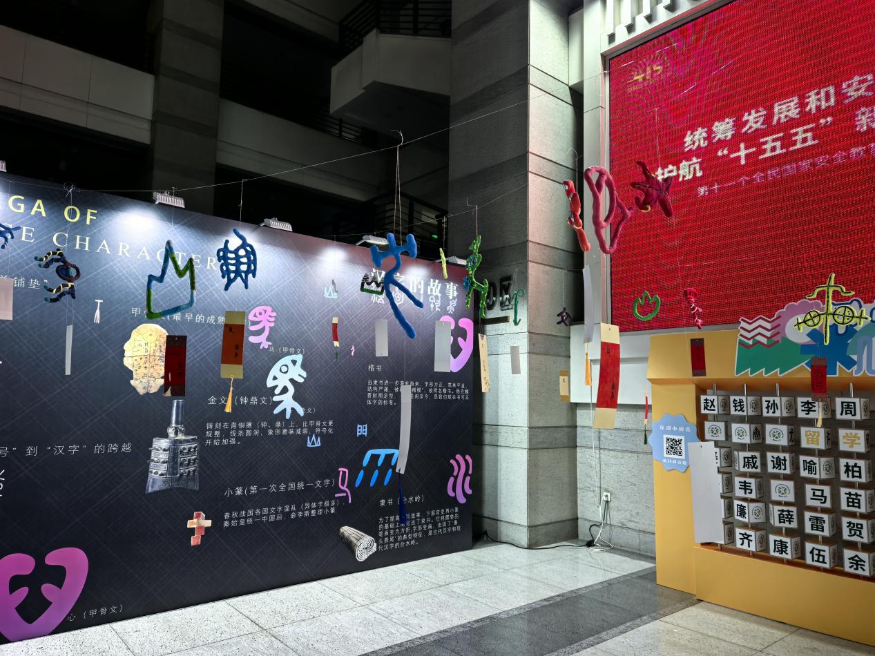 主楼内,汉字的故事展区格外引人注目。展区以汉字演变为主线,梳理汉字从结绳记事、仓颉造字、甲骨文、金文、小篆到现代汉字的千年演变历程。展区核心亮点集中展示了我校留学生以粘土手工制作的甲骨文作品,留学生们巧用粘土塑形,复刻“日”“目”“马”“麦” 等经典甲骨文字形,古朴拙趣的立体造型,将古老文字艺术化呈现,直观展现远古文字的象形之美,让观者沉浸式读懂方块字的前世今生。